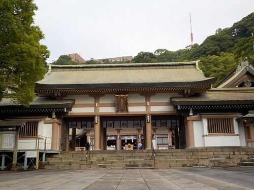 鹿児島中央駅と鹿児島駅の中間くらいの場所にある照國神社へ行ってきました。 早朝にサイクリングをしていたら大きな鳥居が見え、気になって入りました。 照國神社と保食神社 鳥居をくぐったところに、彫刻のように手入れされた木がありました。 マークは島…